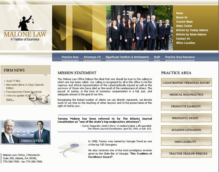 Разработка веб-сайта юридической компании в США Malone Law. Предметом деятельности данной компании является предоставление квалифицированной юридической консультации как физическим, так и юридическим лицам. Сайт компании предоставляет всю необходимую информацию о работе и персонале фирмы. Постоянно обновляющиеся новости позволяют быть в курсе всех юридических событий.