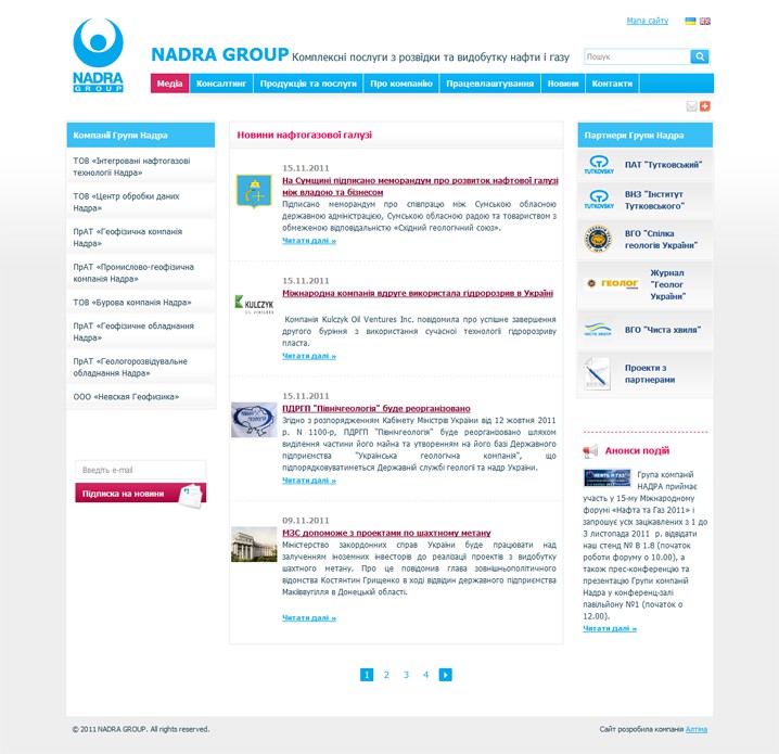 В реализации данного проекта мы совместили 2 задачи: разработка корпоративного веб-сайта, который бы знакомил посетителей с компанией, услугами и продукцией, а также новостной портал, в котором публикуются отраслевые новости, новости компании, анонсы событий. Таким образом сайт nadragroup.com замыкает на себе полный спектр услуг для своих клиентов.