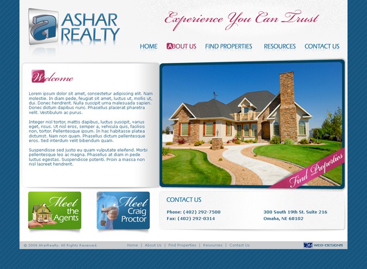 Разработка дизайн-решения сайта для компании - агентства недвижимости в США.