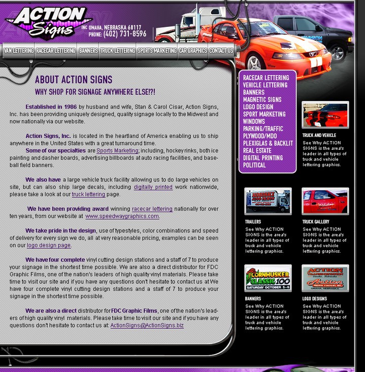 Создание дизайна веб-сайта компании, занимающейся размещением и созданием рекламы на автомобилях. Сайт содержит полную информацию о компании и предлагаемых ею услугах. Клиенты имеют возможность отправить в компанию on-line заявку. При разработке дизайна мы сразу же определились с нужным стилем оформления и основной цветовой гаммой. Все поставленные цели в работе над данным проектом наша компания успешно реализовала.