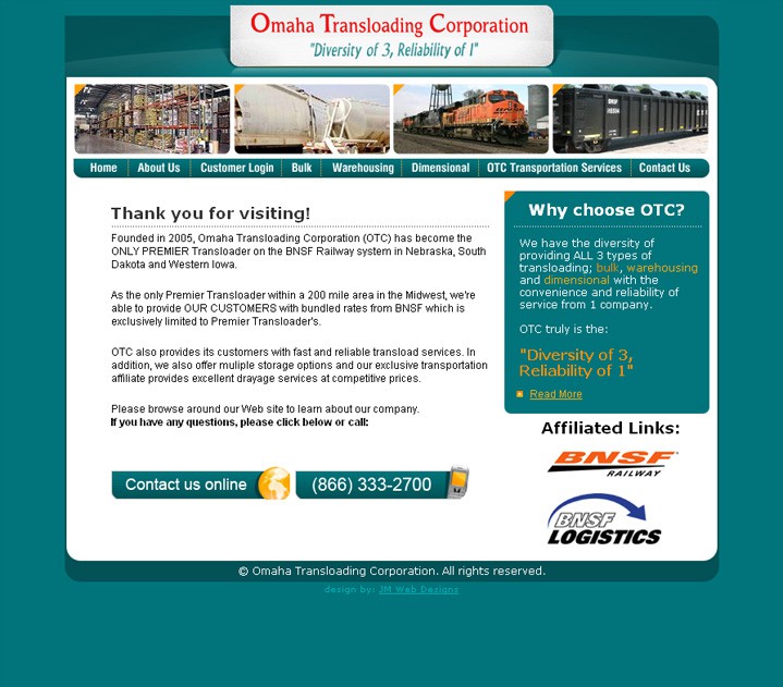 Разработка дизайн-решения сайта для компании, специализирующейся на перевозках и хранении грузов. Оригинальный и простой дизайн позволяет сфокусироваться на главном - на предлагаемых услугах компании. Фотографии, представленные на сайте, отображают направленность в работе компании. Проект предоставляет полную информация и контакты Omaha Transloading Corporation.