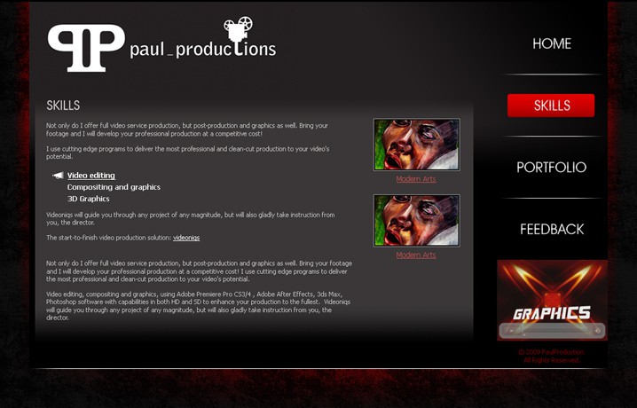 Разработка дизайн-решения сайта для независимого разработчика, который занимается обработкой видео, созданием графики и 3D моделированием.